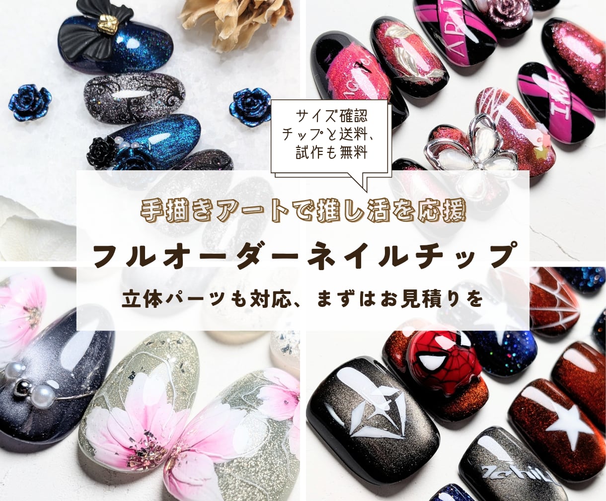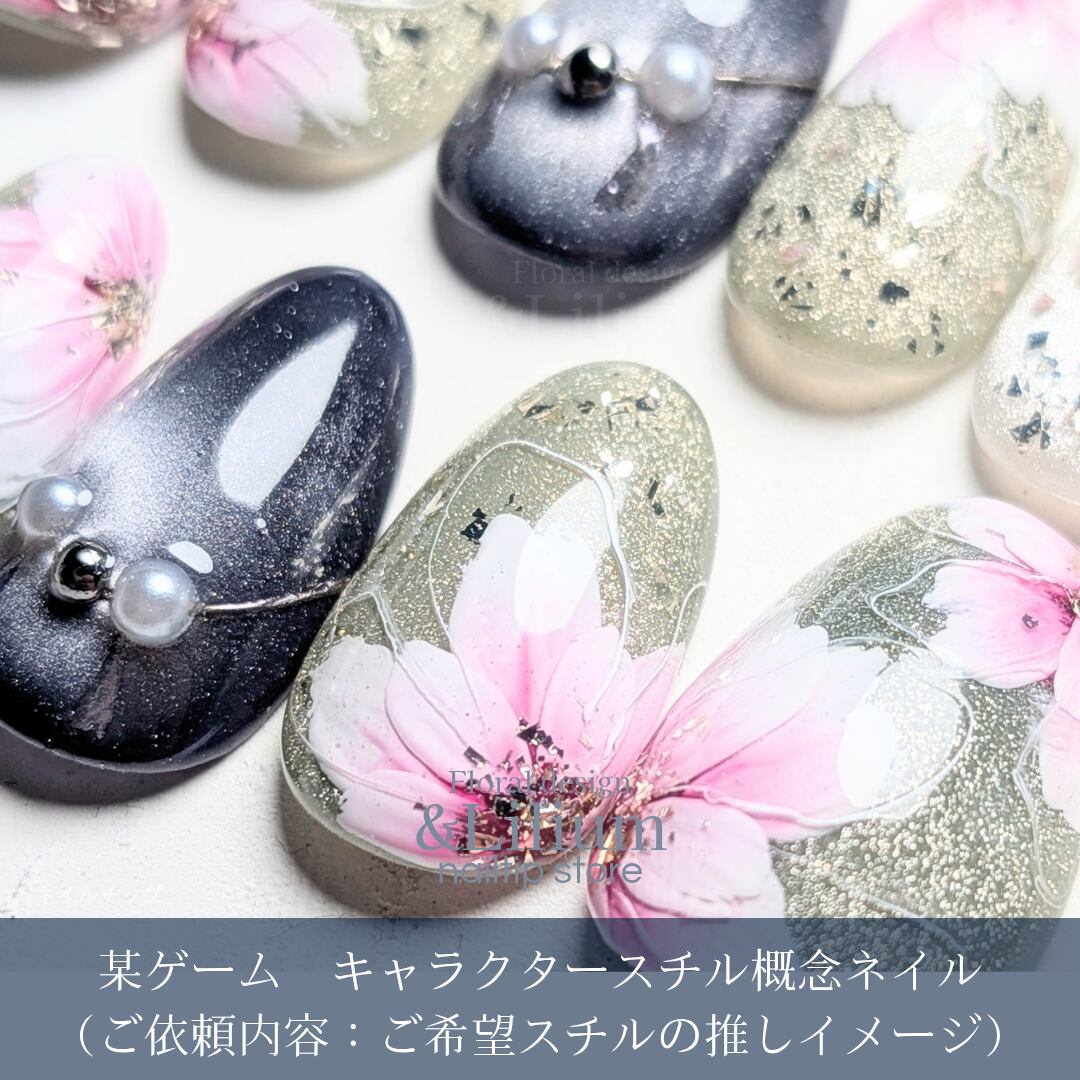 手描きフラワー&推し活のフルオーダーネイルチップ